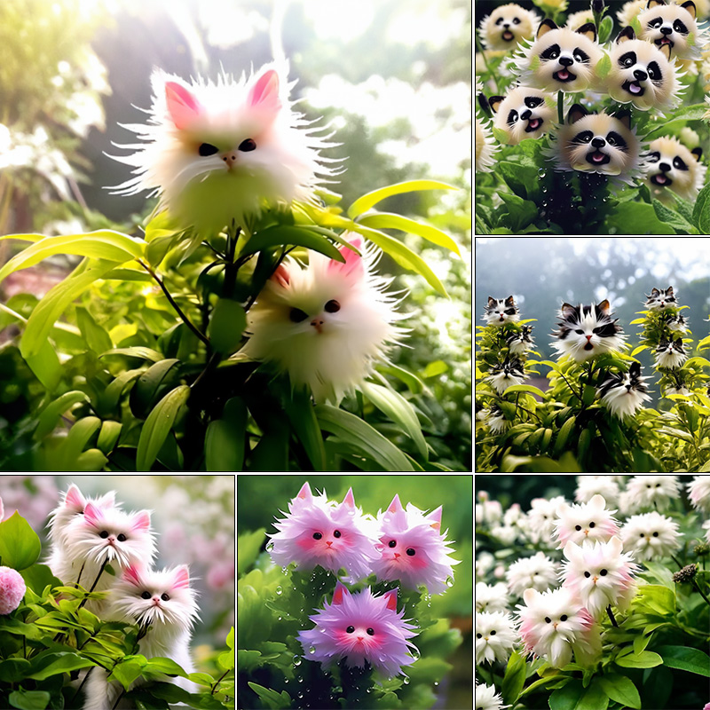 🔥Awesome Plants! 🌈🐱Cats Dazzling×Pink Cat with Long Ears
