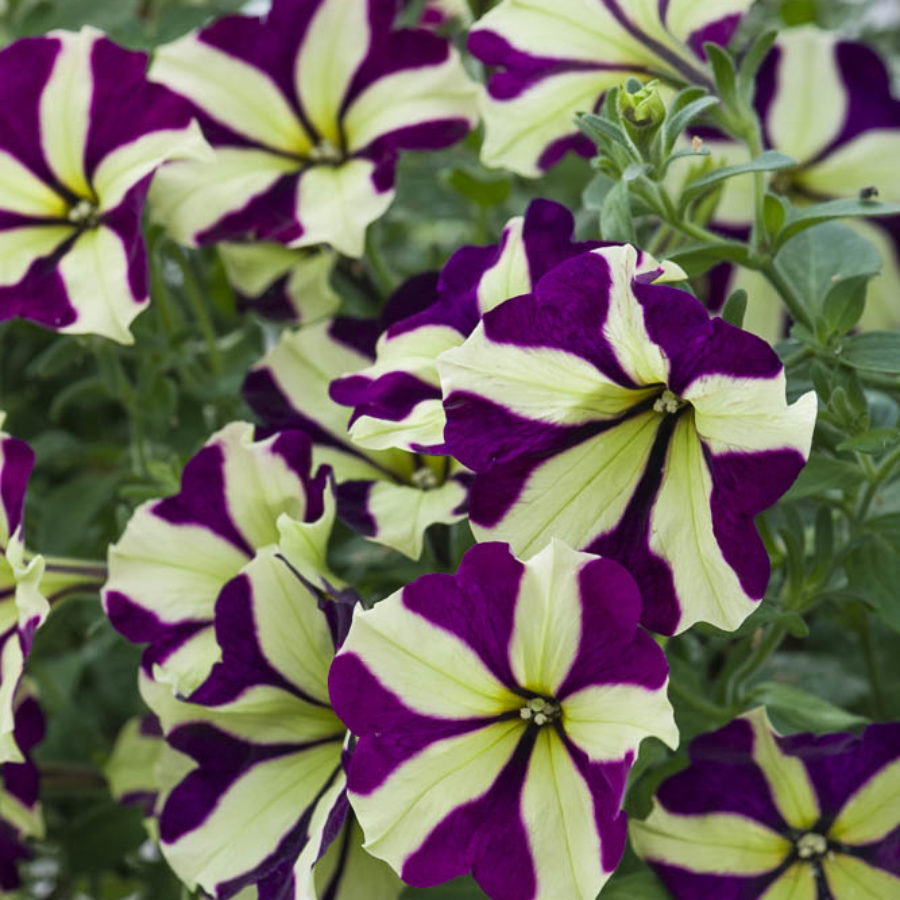Our collection of Petunias in attractive and varying colourways. At the time of introduction they are usually unique colours. Habit, flowering time and flower size vary.