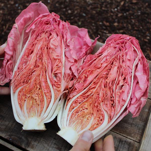 Pink lettuce? You bet! This might be one of the most stunning radicchios to light up the darkest days of winter. This variety takes a long time to mature and only turns pink as temperatures get cold. You’ll probably only find it at winter farmers markets and on the plates of the most discerning of restaurants. Trust us, this beauty will make you smile.